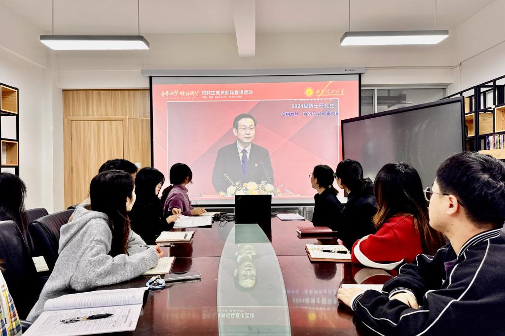 活动当天,学生党员们准时守候在电脑或手机屏幕前,满怀期待地等待着直播的开始。随着直播画面的缓缓展开,一场关于青春、梦想与榜样的盛宴正式拉开帷幕。在宣讲过程中,标兵们用生动的故事、真挚的情感和深刻的思考,展现了新时代研究生的风采和担当。他们有的讲述了自己在学术研究中不断突破自我、勇攀高峰的奋斗历程;有的分享了自己在社会实践中勇于担当、无私奉献的感人瞬间;还有的则向观众们展示了他们在志愿服务和科研创新中的成果与感悟。这些真实而感人的故事,不仅让学生党员们深受触动,也激发了他们追求卓越、勇担使命的强烈愿望。