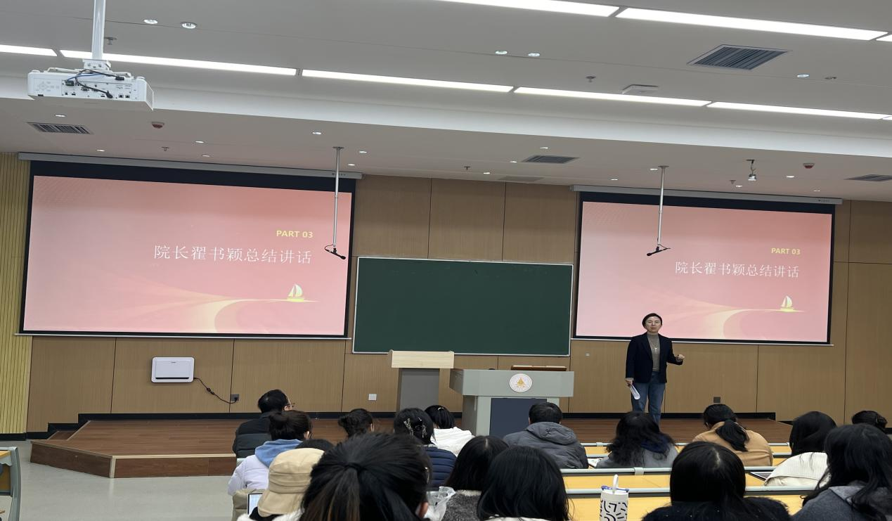 最后,学院执行院长翟书颖作总结发言。她组织全院教职工学习了学校2025年工作要点相关内容,并为大家阐述了如何成为一名优秀教师的发展路径。此外,她还着重强调了评建工作对学校、学院和全院教职工个体的重大意义,动员全院师生凝心聚力、砥砺前行,为推动信息工程学院事业蓬勃发展贡献力量,共同开创学院更加辉煌的未来。