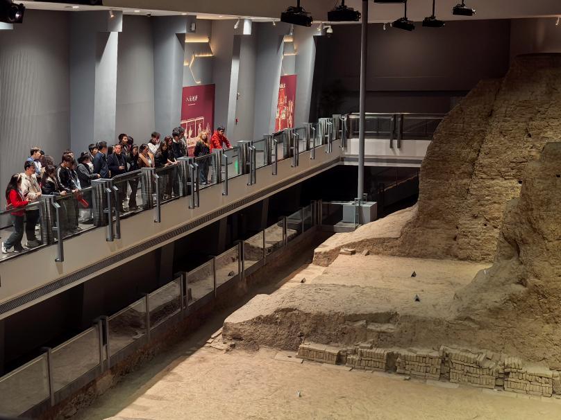 步入博物馆内,城墙断面遗址、过水涵洞遗址和含光门门道遗址等珍贵遗迹吸引了全体党员的目光。这些历史遗迹无声却有力地诉说着西安古城的发展历程及往昔辉煌,大家深深折服于古人无与伦比的智慧与创造力,内心也被这份跨越千年的震撼所填满。