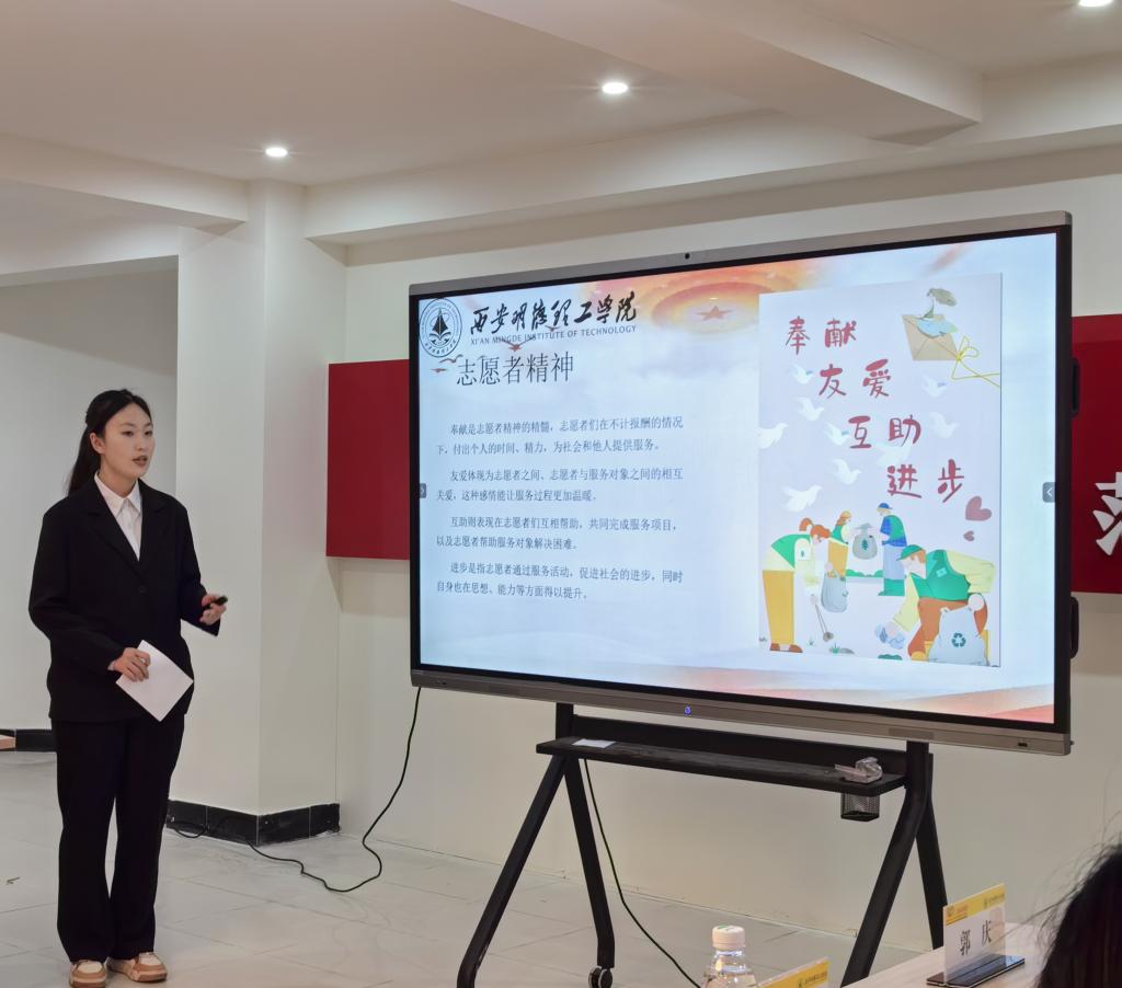 学院特色分享,彰显青春担当。随后,信息工程学院、智能制造与控制技术学院、语言文化传播学院、经济与管理学院、艺术与设计学院及明德科技职业学院六支志愿服务分队依次登台,他们立足实际,分享了一批“小而美”志愿服务行动。一是开展校园文明行动,组织“清洁校园 共创文明”活动30余场,规范单车摆放500余辆,开展禁烟控烟宣传覆盖万人次。二是开展青春暖心行动,举办“学雷锋遇见女生节”主题活动,“她”力量定格芳华,传统美德与青春活力激情碰撞,擦出了温暖而美好的火花。三是开展“我为同学办实事”朋辈导师、学业帮扶50场,惠及学生800余人次。四是开展常态化品牌行动,持续推进“沣河行动”义务家教、留守儿童“关爱行动”、助老“金晖行动”等,累计服务时长超1万小时。