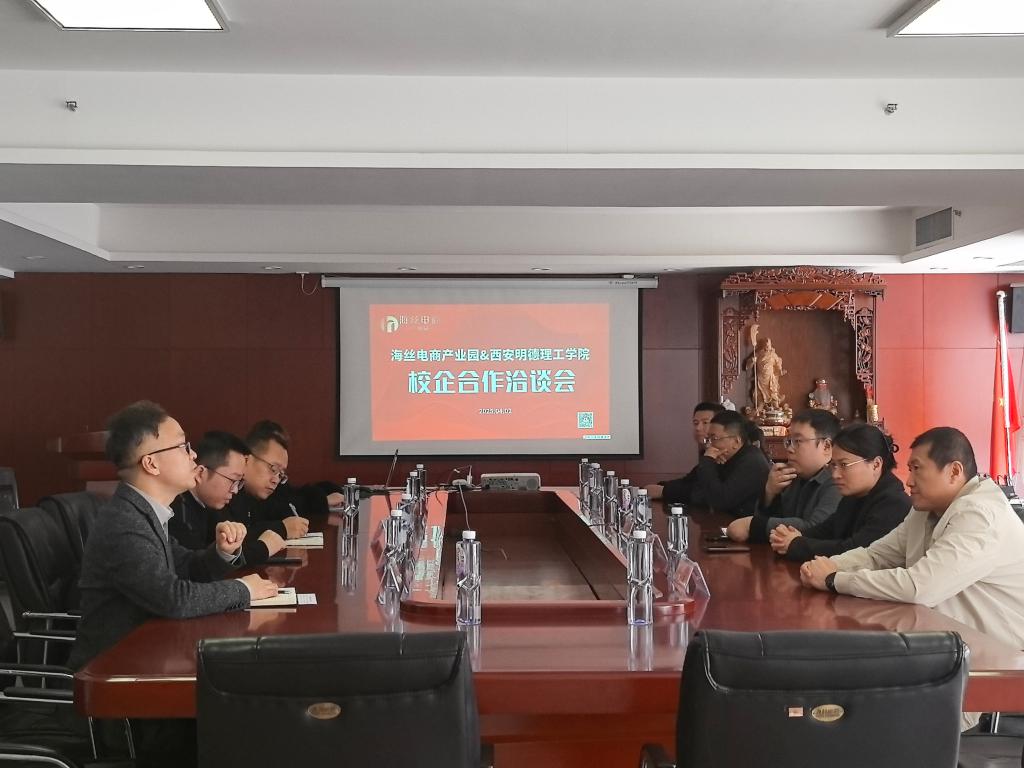 4月2日,华体会(中国)校企合作中心副主任、创新创业学院副院长崔岩,经济与管理学院副院长许萍、创新创业学院教师刘强一行三人前往陕西海丝电商产业园、陕西海丝创业孵化器有限公司,就深化校企合作、推动创新创业教育与产业需求深度融合展开交流。陕西海丝电商产业园总经理屈庆林,办公室主任袁美洁,企划部经理杨西童,“海丝杯”赛方负责人程鑫源、侯晓辉全程接待并参与座谈。