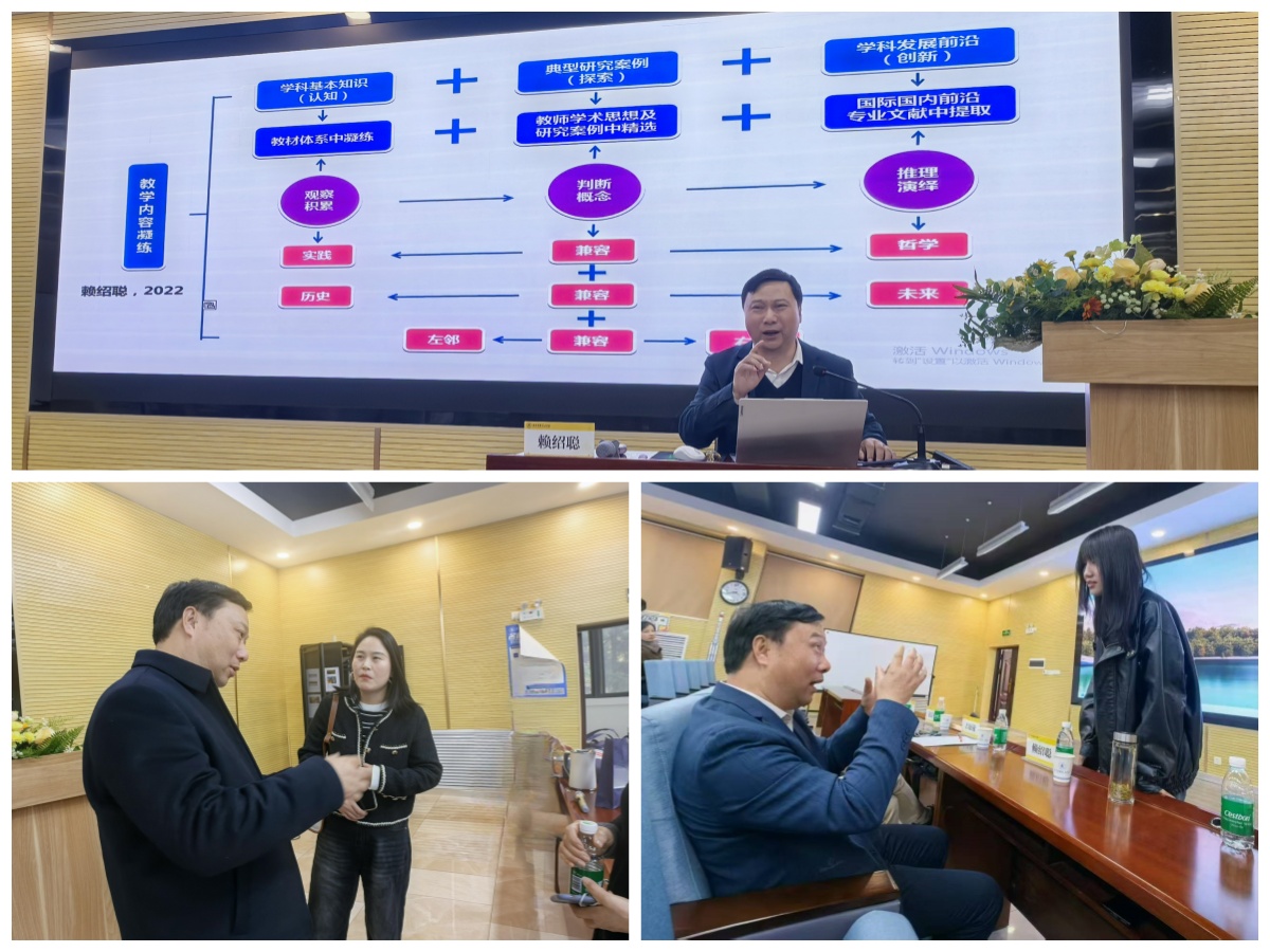 赖绍聪教授以《高效课堂教学秘籍:教什么?怎么教?》为主题,进行了专题报告。他从教育教学目标、教学内容凝练、教学策略选择、教学方法优化等四个方面进行了深入浅出的讲解。他指出,教学过程是教与学双边互动过程,教学是教与学的统一,教为学而存在,学又要靠教来引导,二者相互依存,相互作用。课堂上,他结合自己丰富的教学经验和深厚的学术底蕴,深入浅出地阐述了高效课堂教学的核心要素与实施策略,还特别分享了其独创的教学方法。这些亮点内容引发了教师们的强烈共鸣与深入思考。他还特意安排了互动环节,与教师们就教学问题进行了深入的交流与探讨。