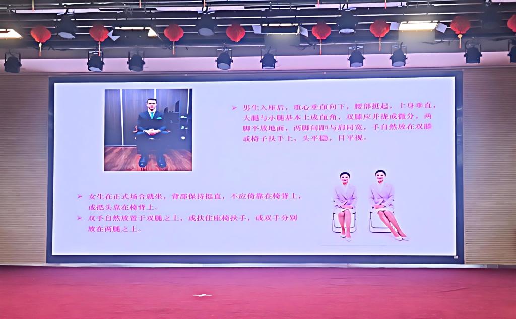 在面试礼仪讲解中,姚老师讲到面试礼仪是求职过程中非常重要的一环,它不仅体现了求职者的个人素质和职业形象,还能直接影响到面试官对求职者的印象。应注意几个关键点,一是着装得体,面试时的着装应该与所申请的职位相匹配,展现出专业和尊重。二是准时到达,提前10分钟左右到达面试地点。三是礼貌用语,在面试过程中,使用礼貌用语,结束时应向考官表示感谢。四是注意肢体语言,保持良好的站姿和坐姿,避免不必要的小动作。五是恰当的眼神交流,与面试官进行适当的眼神交流。六是控制语速和音量,保持语言表达的准确性、精炼性和生动性。