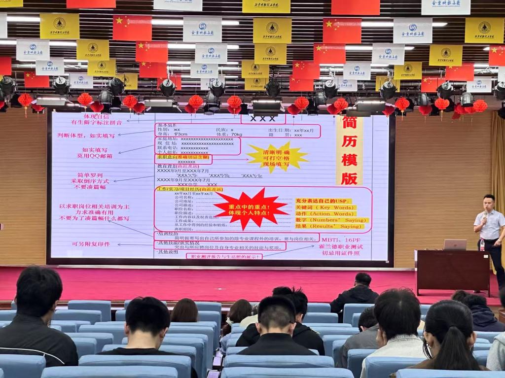 为助力我校2026届毕业生掌握职场“敲门砖”,提升就业竞争力,学校招生就业中心统筹谋划、积极协调,联合长安区人力资源和社会保障局针对我校2026届毕业生制定了就业形势分析、毕业生就业意识唤醒、观念转变、能力提升、风险防范等系列就业专题讲座计划。4月9日下午,在建德楼203教室,学校特邀国家高级人力资源管理师、国家高级企业培训师、国家高级劳动关系协调师姚栗为2026届毕业生带来了一场以“求职简历设计及面试礼仪”为主题的就业指导讲座,200余名2026届毕业生及辅导员、就业办公室人员参会。