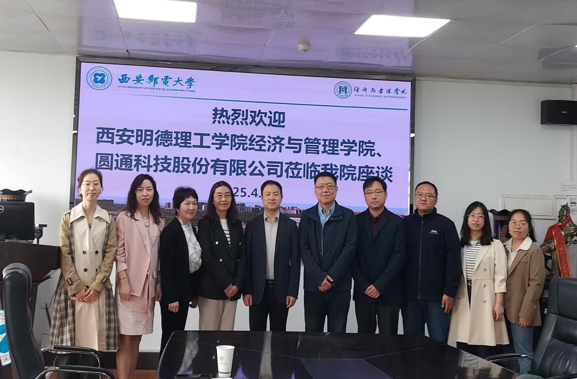 为探索应用型人才培养新路径,提高人才培养质量,在圆通科技股份有限公司对接下,4月11日,经济与管理学院党委书记何文举、数字金融产业学院副院长刘敏及会计学专业负责人张荣斌、教师代表一行6人赴西安邮电大学开展微专业建设调研。西安邮电大学经济与管理学院副院长侯光文、教务办主任朱文斌、工商管理系主任张权及各专业教师代表,圆通科技股份有限公司总经理张琼、副总经理付慧杰、圆通科学工作院总院副院长白雯丽参加了座谈交流。