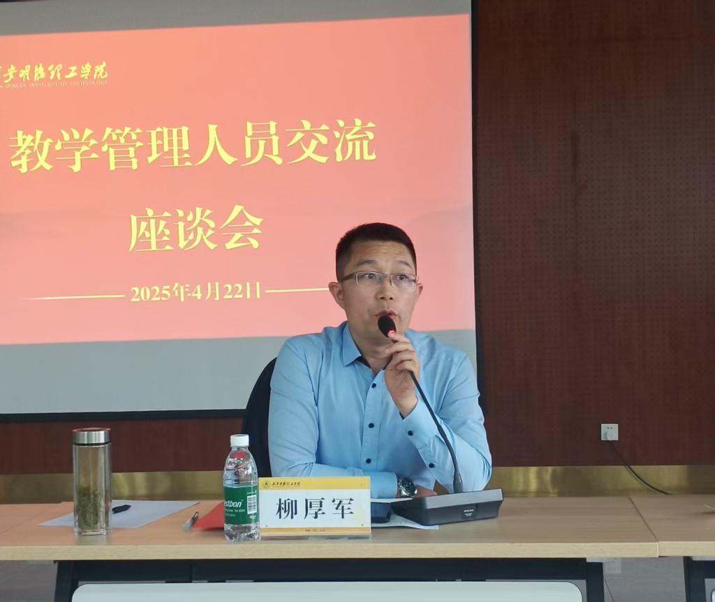 副处长柳厚军首先介绍了会议背景、目标、沟通交流的主题,并强调参会人员应立足实际、畅所欲言,鼓励大家积极建言献策。他指出,学校一直高度重视日常教学管理服务规范化建设工作,本次座谈会旨在通过面对面交流,梳理教学管理中的难点、堵点,形成改进合力,提升管理服务水平。