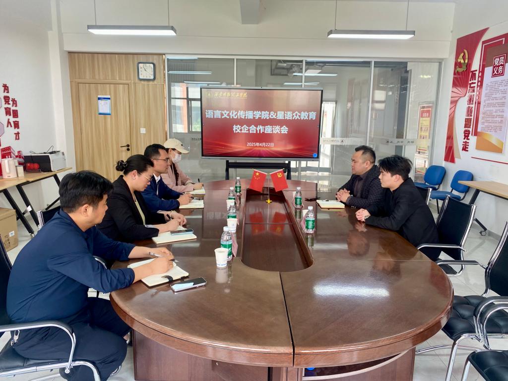 为加强校企合作交流,提升外语类应用型人才培养质量,拓宽学生实习就业渠道,4月22日上午,语言文化传播学院与星语众教育校企合作座谈会在明志楼北406会议室举行。星语众教育集团执行总裁兼人事总监张方荣、资源部负责人李瑞富,学院党委书记赵旭东、副院长刘勇、党委副书记杨峰以及毕业班辅导员参加座谈会。