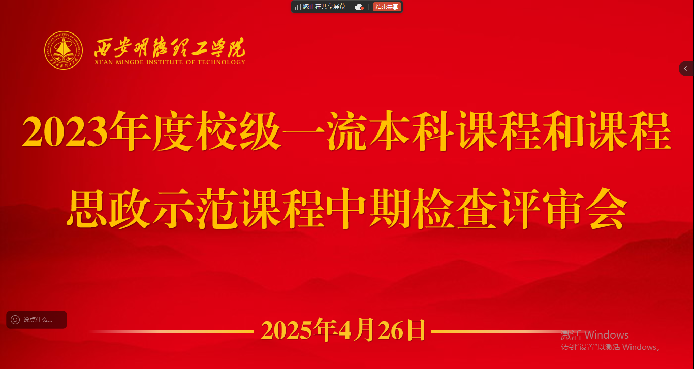 为进一步推动我校课程建设,确保各项课程建设任务的顺利实施和建设取得实效,根据学校《关于开展2023年度校级一流本科课程中期检查的通知》《关于开展2023年度校级课程思政示范课中期检查的通知》,4月26日学校通过线上会议顺利举行2023年度校级一流本科课程和课程思政示范课程中期检查评审会。会议特邀请西安电子科技大学王益锋教授、陕西学前师范学院张慧军教授、西安电子科技大学朱娟娟教授、西安科技大学冯青教授及西北工业大学杨冰郁教授担任评委,相关课程负责人老师及教务处文亮、花婷、张俊维参加了会议。会议由教务处副处长文亮主持。