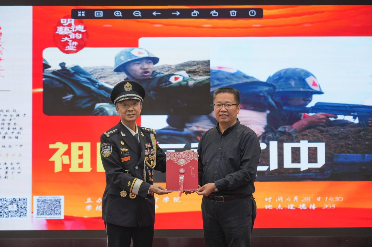 4月28日,华体会(中国)艺术与设计学院联合学校人民武装部举办了一场以《祖国在我心中》为主题的报告活动,现场气氛热烈,反响强烈。本次活动邀请到了拥有传奇经历的陕西省公安厅赵旭老师担任主讲嘉宾,他既是对越自卫反击两山轮战的一等功臣,也是一位用镜头记录现代战争的战地记者。艺术与设计学院院长苟秉宸、党委学生工作部副部长童杨梓、学校师生代表400余人共同参加了此次活动。活动由艺术与设计学院党委副书记乔建主持。