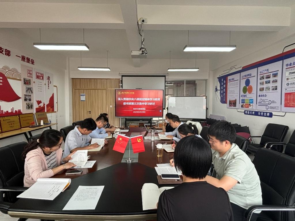 4月29日,经济与管理学院举行深入贯彻中央八项规定精神学习教育专题读书班暨党委理论学习中心组学习会,学院党委委员、师生党支部书记和团委书记参加会议,会议由学院党委书记兼行政副院长何文举主持。