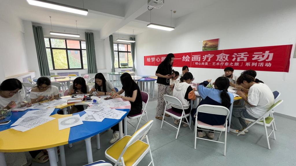 为引导大学生释放心理压力,在艺术创作与交流互动中实现心灵疗愈,5月15日,语言文化传播学院在明理楼团体心理辅导室开展“绘梦心旅”绘画疗愈活动,各二级学院学生代表参加。活动由学院心理专干谭辉主持,大学生心理健康教研室霍瑜婷老师指导。