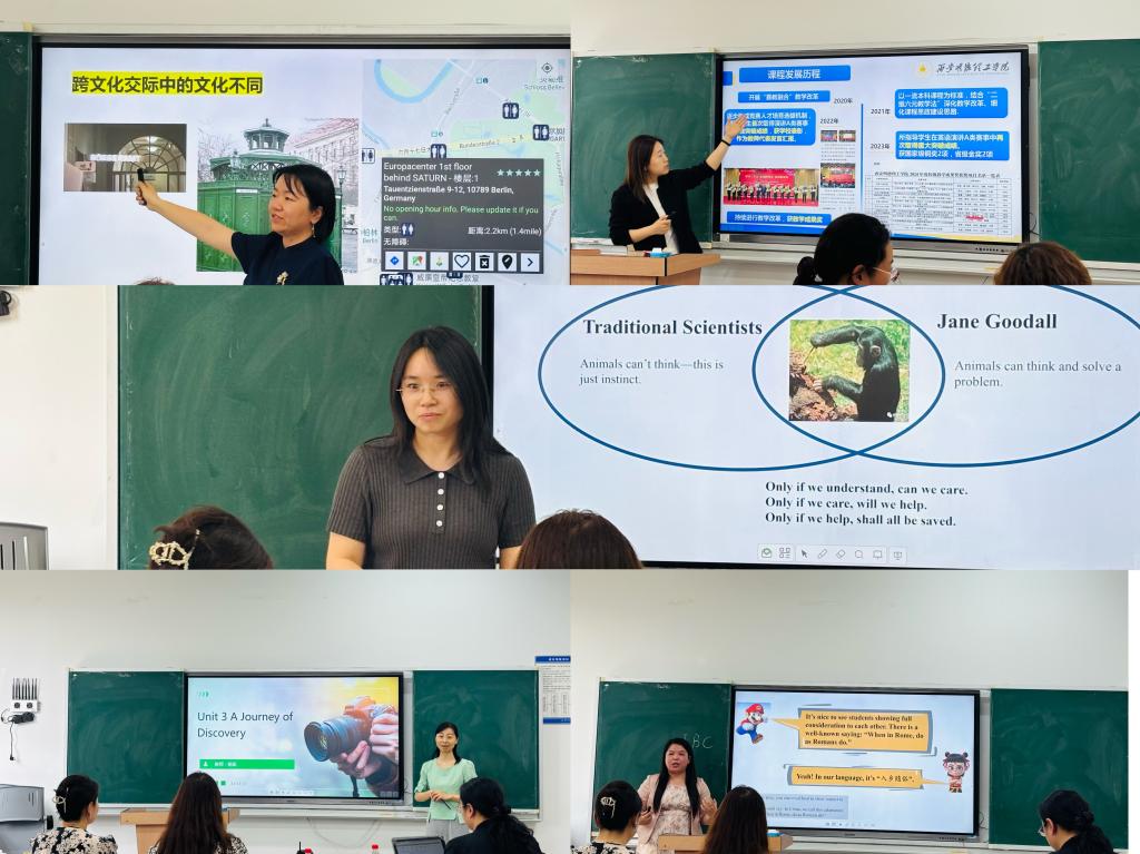 活动现场,7位参赛教师各展风采,呈现出多元创新的教学模式与实践成果。陈婧老师以德国厕所文化为案例,借助在线问卷开展动态诊断式教学;景晓冰老师运用数字人技术塑造“哪吒”形象,生动解析表情符号的跨文化功能;戴婷婷老师创设沉浸式语言实训场景,并通过建立成长记忆库跟踪学生学习轨迹。此外,范辉老师将AI 技术深度整合于《综合英语》课程,以“简・古道尔AI 图像生成”实践任务化解知识碎片化问题,构建起“精读 + 社会文化”的多维教学内容体系;杨茹老师以视频任务驱动课堂,实现“旅游文化”教学模式的重构;刘雨涵老师聚焦破解学生“不听课、不观察、不发言、不学习、不参与”的“五不”痛点;孙婷老师则创新性地运用马里奥和哪吒双数字人角色,模拟真实交际场景。