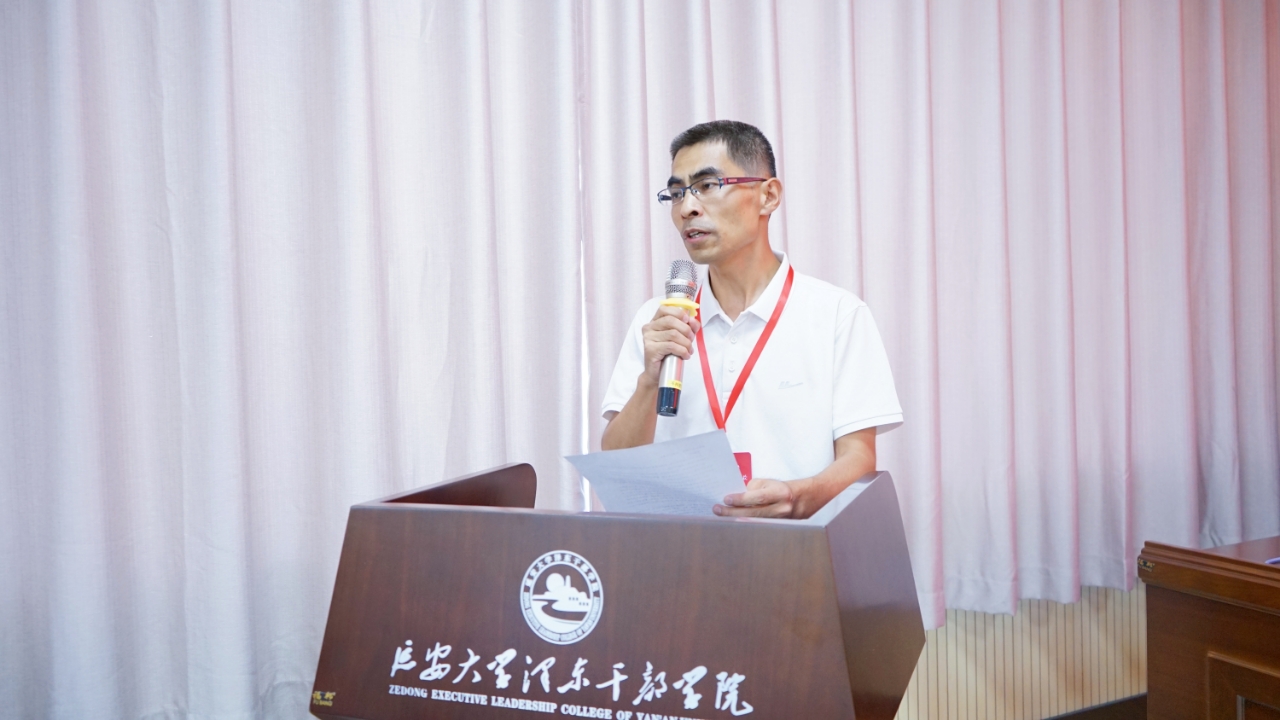 延安大学郭东军副院长致欢迎辞,向全体学员表示了欢迎,并简要介绍了延安大学在红色教育方面的特色与独特资源。