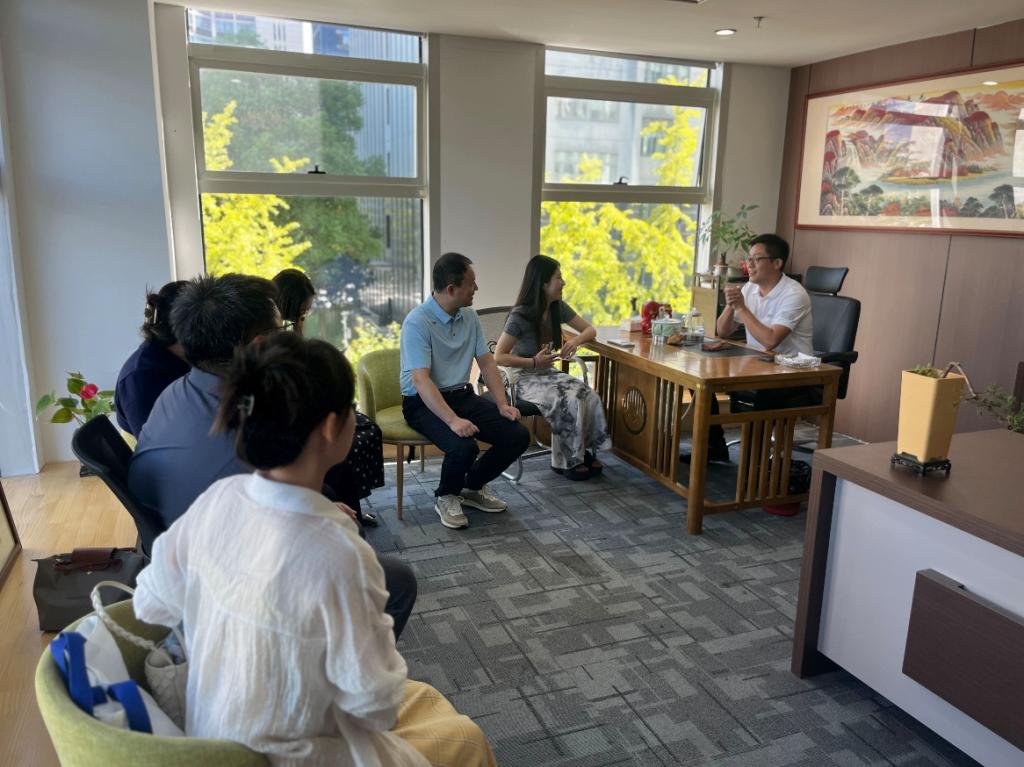 在校企合作单位杭州司腾网络科技有限公司,企业总经理茹宝、校企合作部负责人林恩热情接待了学院一行,陪同调研团参观了企业办公环境和跨境电商经销产品。座谈中,茹宝介绍了企业在跨境电商方面成功的校企合作案例,就“十五五”期间跨境电子商务的发展趋势做了分析;何文举、刘敏分别对企业为学院国际经济与贸易专业学生小学期提供的实习实践表示感谢,期待校企深度合作,为学院“十五五”期间传统专业的转型升级提供参考。
