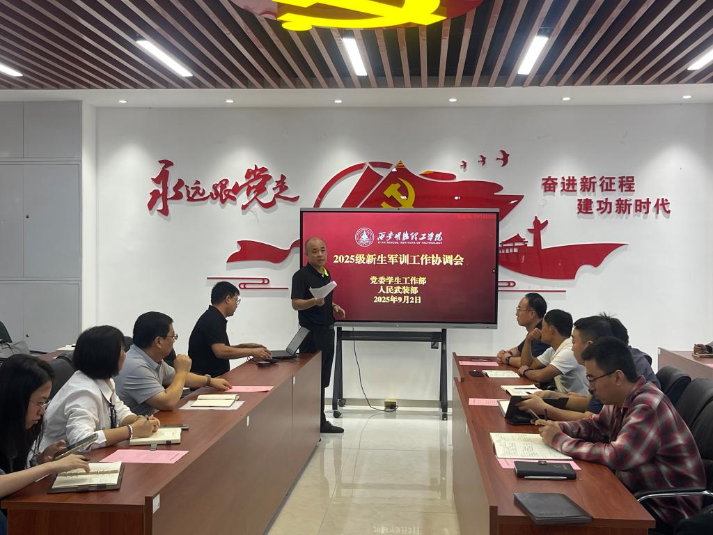9月3日,学校2025级新生军训工作协调会在明志楼北108会议室召开。党委学生工作部副部长、人武部副部长童杨梓主持会议,相关职能部门、教辅单位及各二级学院负责人齐聚一堂,共同为即将启动的新生军训工作擘画方案、凝聚共识,确保军训工作安全、有序、高质量推进。
