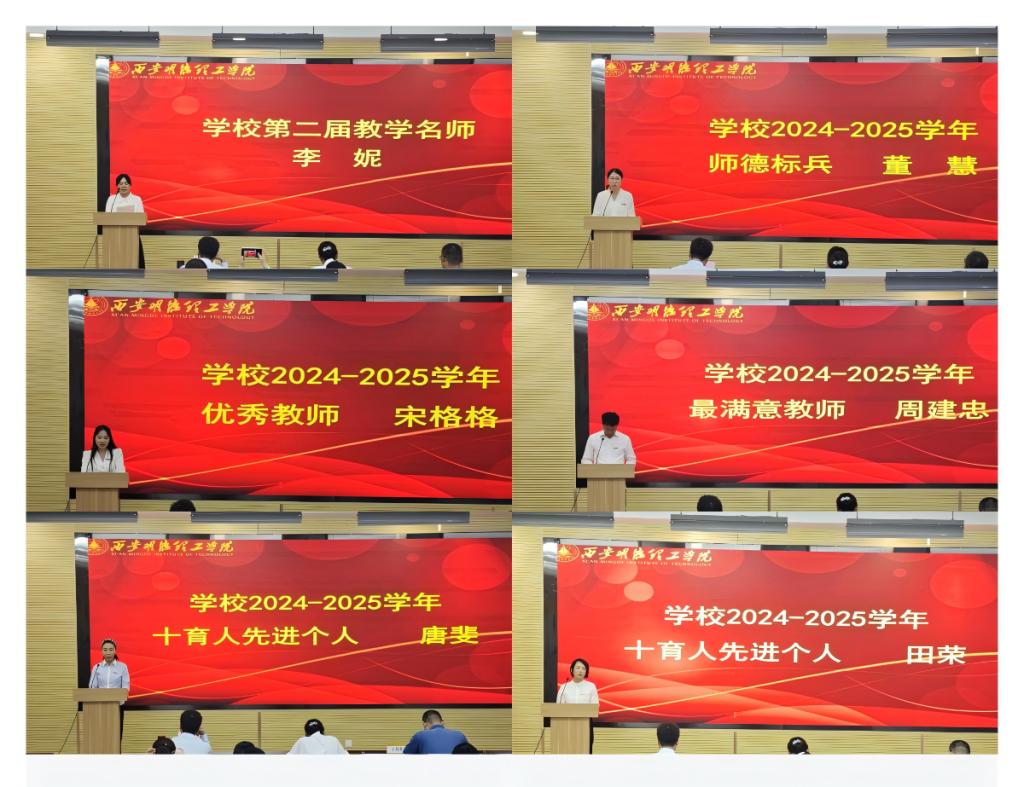 随后,为肯定在学院评建工作中表现突出的教职工,会议对2024-2025学年学院评建工作先进个人进行表彰。学院领导为李妮、张华等18位教师颁发荣誉证书,既是对获奖教师的祝贺,也彰显了全院教职工向先进学习的坚定决心。接下来,获得学校第二届教学名师、2024-2025学年“师德标兵”“优秀教师”“最满意教师”以及十育人“先进个人”表彰的6位教师依次分享育人心得,以身示范,为全体教师工做出了表率。