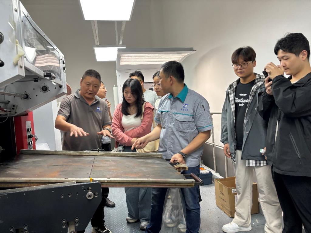 实习期间,企业导师们围绕印刷生产的技术演进、人力资源管理、企业财务与成本管理、工艺技术与客户服务、生产制造管理等主题开展了系列专题讲座与实操培训。学生们通过参与印刷生产工艺及印前管理全流程培训,了解了现代制造业中MES系统和二维码管理等信息化手段在生产环节的运用;学习了现金流管理、成本核算方法及其对企业运行的重要意义;掌握了招聘、面试的实用技巧,并结合自身情况展开了积极探讨。同学们走进两家企业的生产车间,参观了手工裱盒生产线、烫金模切生产线、质检生产线,实地观摩了客户服务及售后流程的规范管理,近距离感受企业先进的印刷生产线及厂区布局,进一步加深了对行业的认知。