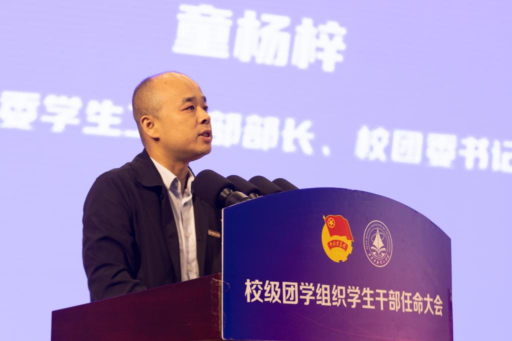 最后,学校党委学生工作部部长、校团委书记童杨梓总结讲话,对新一届学生干部提出期望,希望大家牢记“自我管理、自我服务、自我教育”的宗旨,以青春之力扛起责任,以务实行动推动团学工作创新发展,为学校事业进步与学生成长成才贡献华体会在线官网力量。