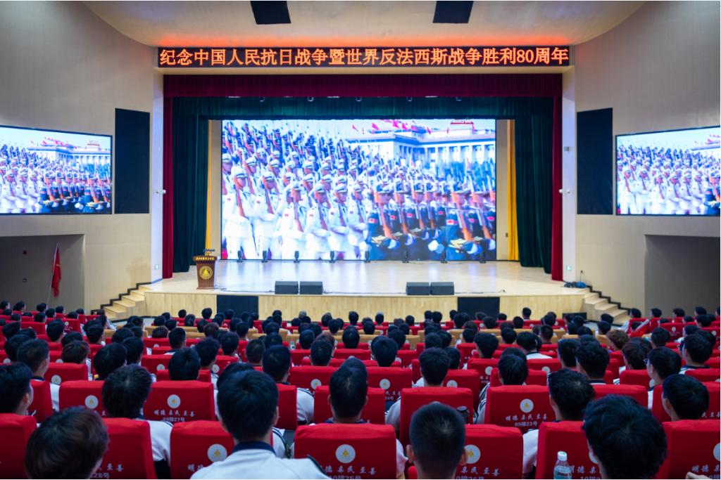 全体新生观看纪念中国人民抗日战争暨世界反法西斯战争胜利80周年大会