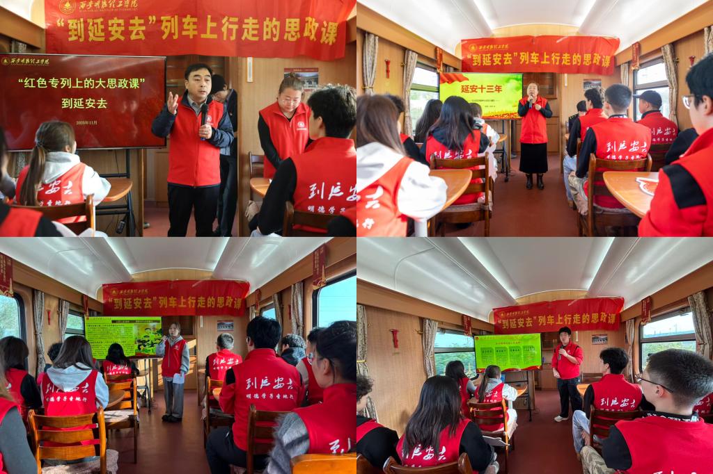 11月1日清晨,师生们在西安火车站集合,乘坐红色研学专列奔赴延安。列车行进途中,学院党总支书记王庭良、辅导员王会霞讲了专题思政课,要求学生此次圣地行认真学习“党中央在延安十三年”的革命历史,深刻理解形成的延安精神是中国精神谱系重要组成部分等。学生耿子越、龙璞玉、付雅欣、王梓祺等四名同学结合自身之前赴延安学习体会,谈了自身对延安印象、延安精神等感悟,同时也号召同学们此次一定要带着崇拜与敬畏去学习。学生们还自发组织红歌联唱,《南泥湾》《东方红》等经典旋律响彻车厢,激昂的歌声与窗外掠过的黄土高原相映成辉。