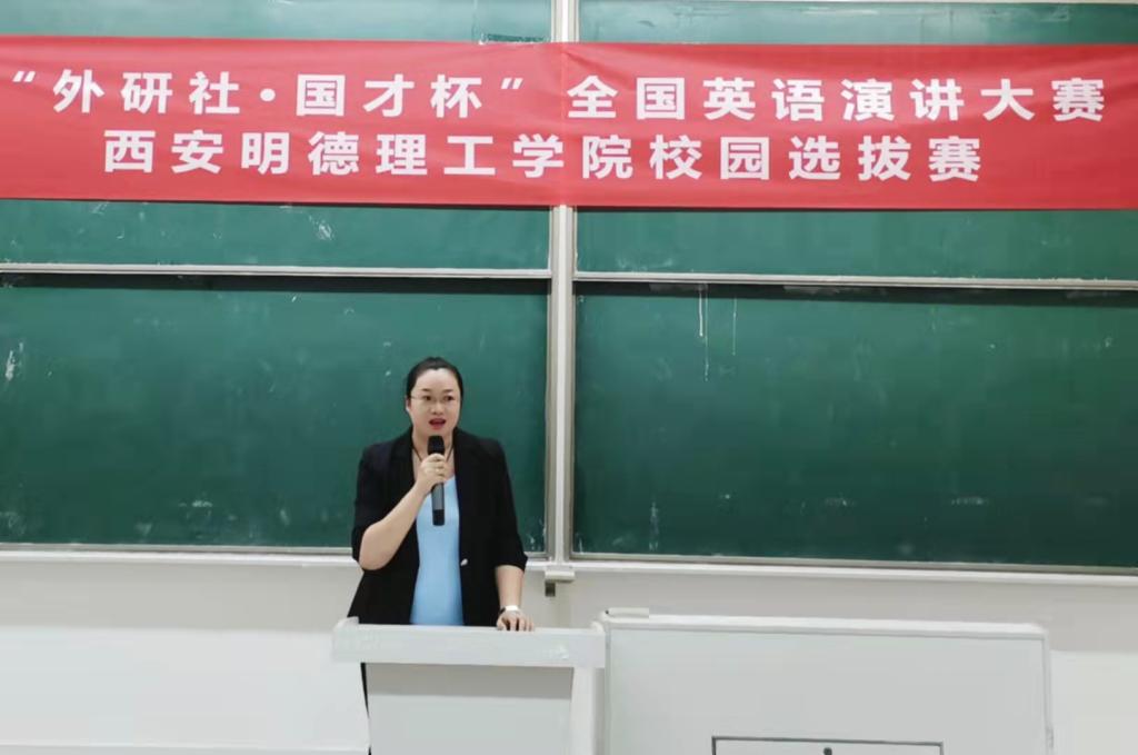 刘勇副院长在赛前致辞中强调了本次比赛的重要意义。她表示,作为新时代的青年大学生应怀揣中国情怀,做中国故事的讲述者和中国文化的传播者,用英语讲好红星故事,让世界聆听中国之声。