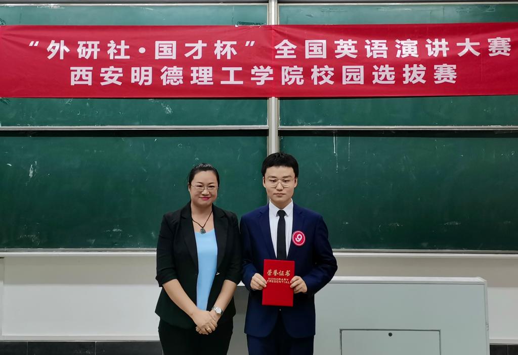 本次比赛特等奖获得者为语言文化传播学院2020级学生陈立捷将接受英语演讲团队指导教师的专项训练,代表我校参加“外研社•国才杯”全国英语演讲大赛陕西赛区决赛。