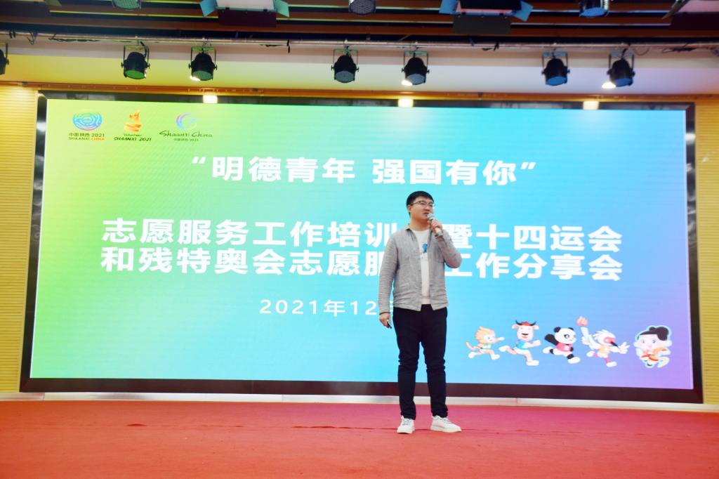 为更好地弘扬志愿服务、无私奉献的精神,进一步增强志愿者的责任心,提升服务水平,近日,我校青年志愿者服务团在建德楼203报告厅组织举办了“明德青年强国有我”志愿服务工作培训会,邀请西安志愿者协会副秘书长、西安志愿者行动中心张国豪老师为志愿者们做专题培训。党委学生工作部副部长、团委书记童杨梓,校团委刘雄参加了本次活动。