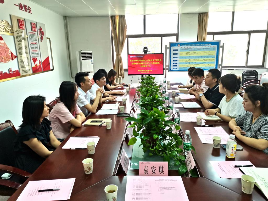 6月10日上午,信息工程学院党委副书记高长江一行七人到西安培华学院学习调研。西安培华学院智能科学与信息工程学院党总支书记兼行政副院长南兵、全体学工干部参加调研会,会议由党总支副书记兼学生服务站站长王林主持。