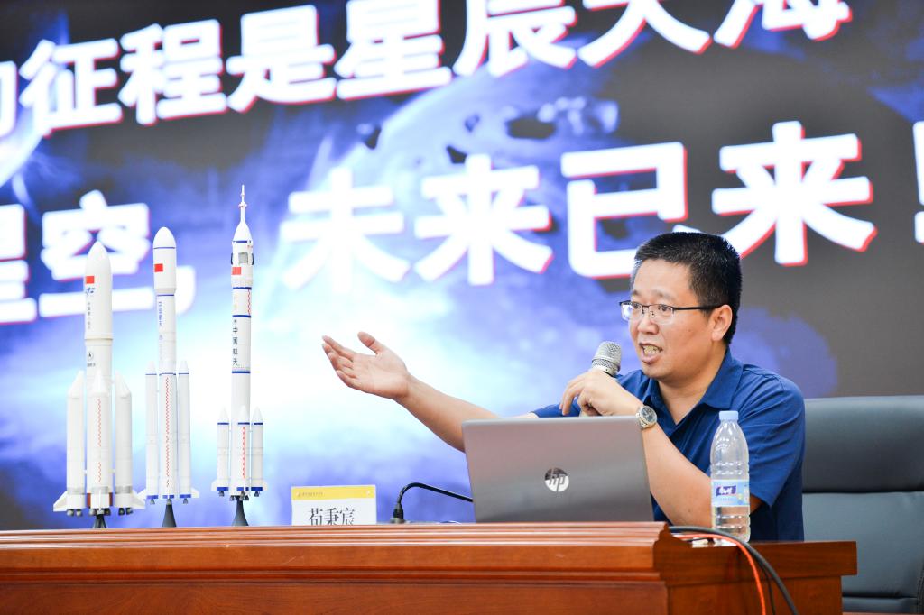 苟秉宸教授深入浅出、通俗易懂地讲解了我国航天人发奋图强,赶超世界的辉煌历程,细数世界航天发展史,特别是中国载人航天所取得的辉煌成绩,并纵观“两弹一星”精神、载人航天精神,引领同学们系统深入地理解航天精神的内涵。
