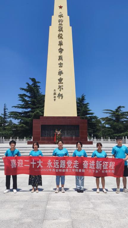 本次“三下乡”专项社会实践活动队在我院办公室主任陆鹤和辅导员张茜的带领下来到了渭南市蒲城县高新技术开发区,带着渭南市及其周边的4名学生围绕“返家乡·进企业·回母校”主题开展了一系列活动,同时围绕“喜迎二十大、永远跟党走、奋进新征程”主题参观了蒲城永丰革命烈士陵园。