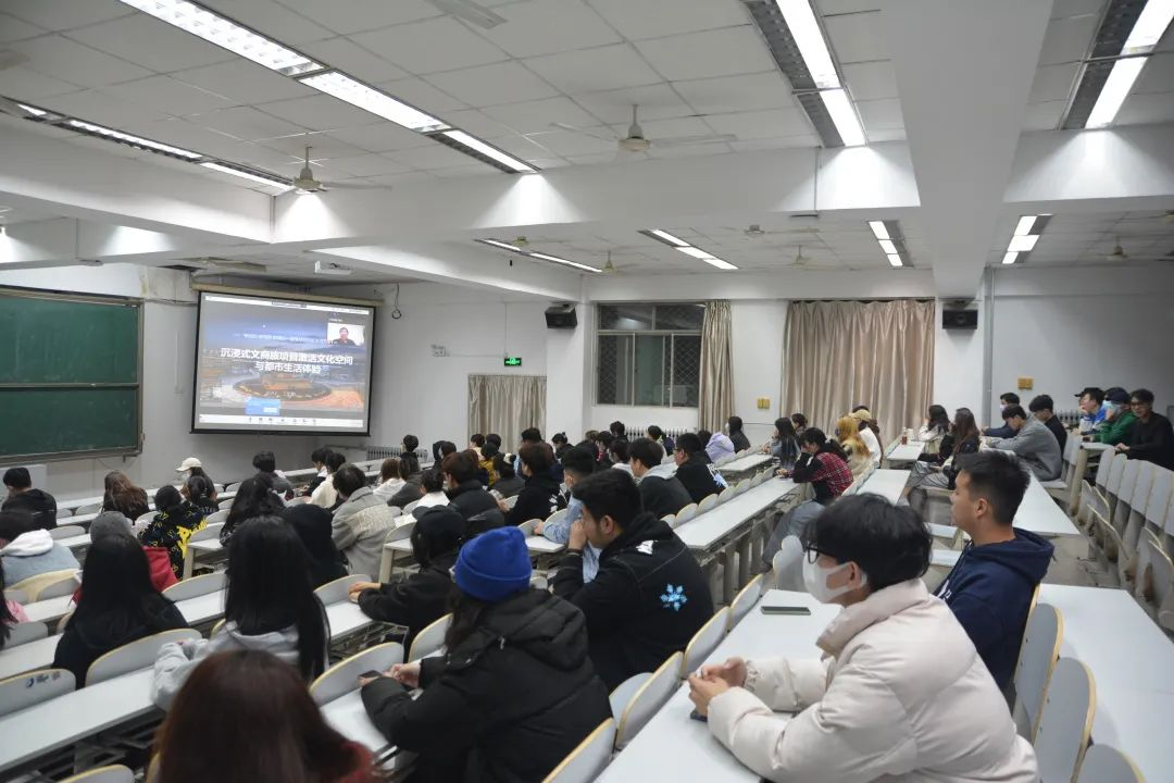 王凯鹏总经理从三个方面对沉浸式文商旅项目激活文化空间与都市生活体验进行讲解。一是围绕经济发展诉求、游客多元消费需求、城市更新和产业调整诉求进行背景分析;二是结合长安十二时辰、大唐灵境簋唐楼、老菜场、永兴坊、大唐不夜城等经典案例进行阐述,详细介绍了各经典项目的历史背景及特色文化;三是围绕科技赋能创新文旅商融合发展、文旅商融合新场景的探索与创新进行更深层的讲解。王凯鹏总经理的个人魅力与教学方式深深地感染着在场的每一位同学。