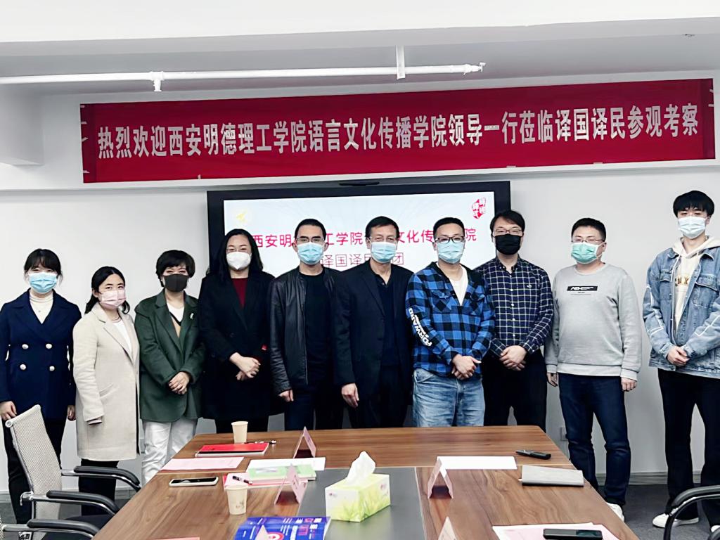 11月7日下午,语言文化传播学院院长马庆林、党委书记赵旭东、副院长刘勇、办公室主任于莉、英语专业负责人柴芸等一行前往校企合作单位译国译民集团西安分公司走访座谈,译国译民集团西安分公司总经理吴强、商务渠道总监沈海涛、商务渠道总监张博、商务渠道专员陈闽樊、商务渠道专员吴希玮参加座谈。