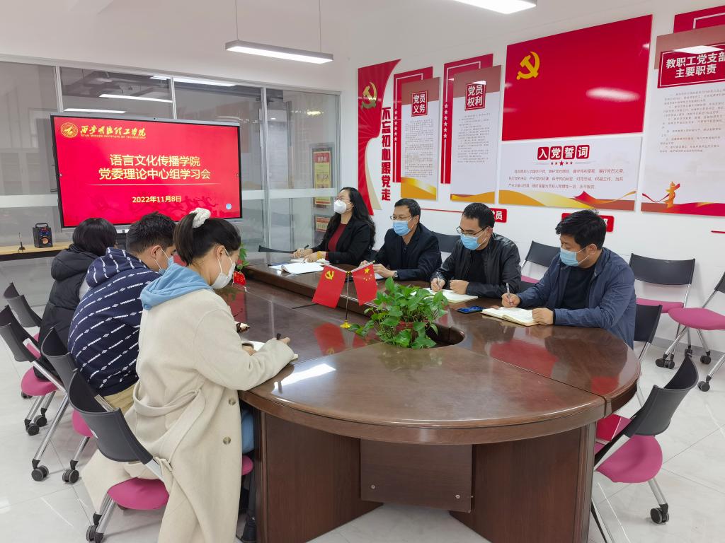 11月8日,语言文化传播学院在明志楼406会议室召开党委理论学习中心组学习会,专题学习党的二十大精神。学院党委理论学习中心组成员参加学习。会议由学院党委书记赵旭东主持。
