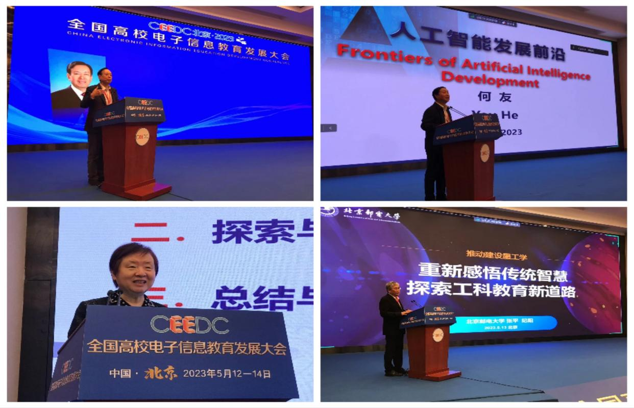 五月,北京月季簇拥绵延,鲜艳多彩,暖意融融。以“新时代 新征程:擘画电子信息高质量人才培养新蓝图”为主题的首届全国高校电子信息教育发展大会于5月12日至14日在北京举行。我校信息工程学院通信工程专业负责人、陕西北斗学院副院长张健,电子信息工程专业教师卫霞、邹昕应邀参会。本次大会由教育部高等学校电子信息类专业教学指导委员会主办,北京邮电大学和清华大学出版社承办。邀请了郝跃等4位院士、40多位校长及院长做主旨报告和论坛报告,另有20多家电子信息及实验实践教学领域的知名企业参与。参会代表来自全国三百多所高校的400多位学科及专业负责人,共同擘画电子信息教育发展蓝图。