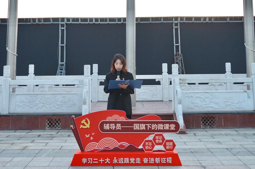3月11日,“辅导员说成长”——第三十期辅导员讲微课“春风三月学雷锋,植绿护绿树新风”国旗下的微课堂爱国主义教育系列活动在学校中心广场举行,党委学生工作部老师、语言文化传播学院师生代表参加活动。