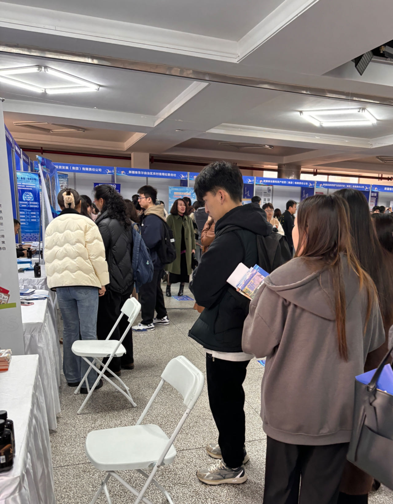 3月18日,由新疆维吾尔自治区公务员局、人力资源和社会保障厅、国有资产监督管理委员会等部门联合组织实施的“慧聚天山 筑梦新疆”新疆维吾尔自治区2024年度面向部分高校选调招聘优秀大学毕业生宣介会暨国有企事业单位双选会在西安交通大学兴庆校区举办。为向我校少数民族毕业生拓展优质就业岗位,切实提升就业服务水平,我校积极响应,精心组织,新疆籍派驻教师那迪娜带领20余名本科应届毕业生参加此次活动。