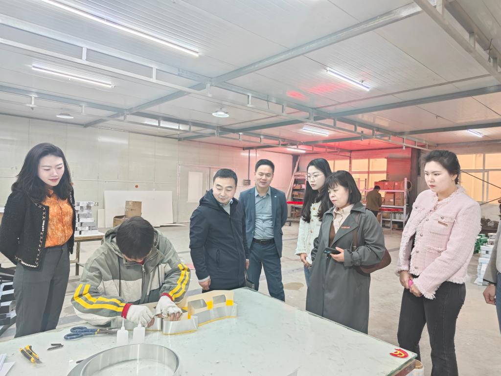 首先,公司负责人徐飞对我校的来访表示热烈欢迎,就公司基本情况、发展历程以及员工办公环境等进行了详细介绍,并参观了企业生产加工全链条,深入了解了广告行业从设计制图到生产成品的全过程,为进一步促进学生就业,使学生对广告制造业有更加深入的了解打下基础。雷宇对陕西飞燕有限公司的热情招待表示真诚的感谢,并从我院基本概况、师资力量、学生发展、专业建设和人才培养等多方面介绍了学院的基本情况,希望能助力企业与学院深度合作,加深与企业联动,推动产教融合,同行共赢。王庭良向企业总经理徐飞表达了我院深入合作的意向,在校企合作的基础上让合作更进一步,运用企业优势使学生在课堂中所学的知识运用实践到社会中,运用学院人才优势不断向企业输送所需人才,增强企业活力,实现共赢。舒粉利共同表示可以将校企合作横向发展,促进企业与学院教师联手形成合力,推动专业实践化和产业专业化的建设。
