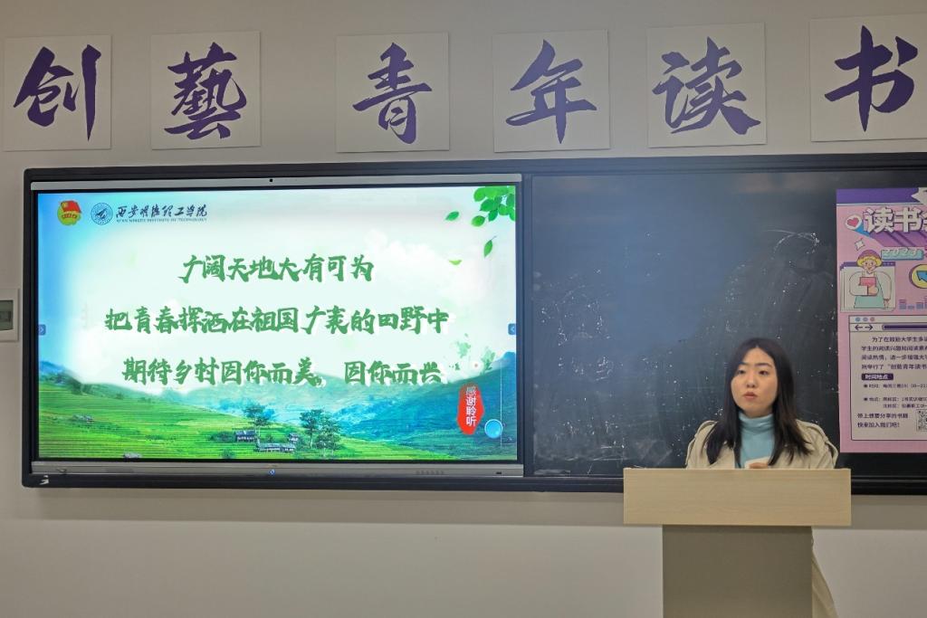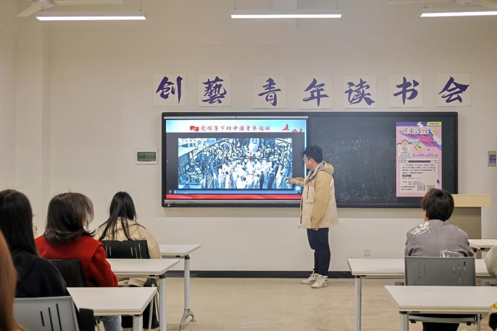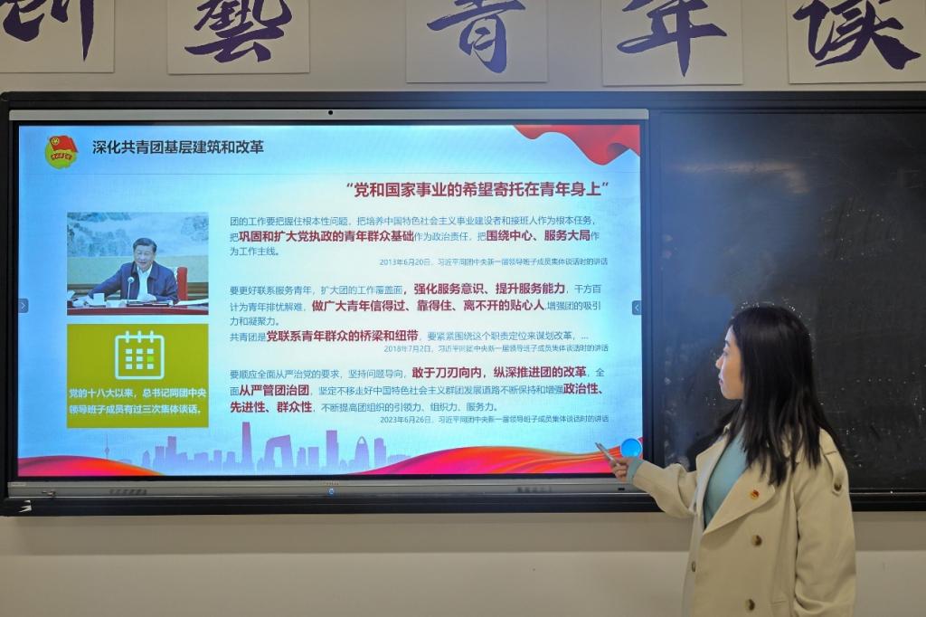 院团委书记兰艳以“牢记时代嘱托,当好桥梁纽带”为主题,分别从“青年在民族复兴伟业中的挺膺担当”“共青团改革和建设历程”、“新时代青年的时代使命”、“回归组织根本,当好桥梁纽带”四个部分展开团课宣讲。她谈到,回顾百年奋斗历程,中国共产主义青年团始终与中国共产党同心同德,同向而行,为中华民族的伟大复兴贡献着青春力量,这决定了团干部作为党的助手和后备军和学生群体中的骨干力量,要牢记时代的嘱托,做好党联系青年的纽带桥梁。其次,她从乡村振兴上的青年担当为切入点,讲述黄文秀、李子柒、西部计划青年等时代楷模的青春事迹,勉励团干部要扎实专业基础,将个人理想与时代发展相融合,将自身价值与时代使命相结合。