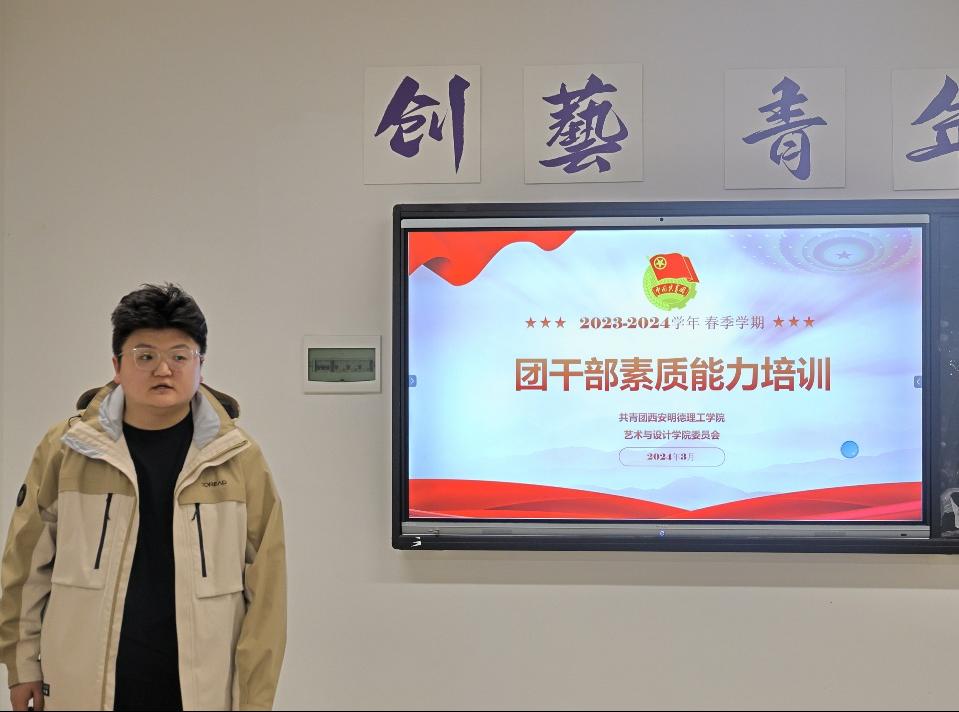 为引领广大团员和青年认真学习领会习近平新时代中国特色社会主义思想和党的二十大精神,持续深化高校共青团基层组织改革。3月26日,艺术与设计学院团委长安校区于1号实训楼501教室召开2023-2024学年春季学期团干部素质能力培训。由艺术与设计学院团委书记兰艳,团委学生干部,优秀团干部、优秀团支书参加此次培训,培训会由团委副书记张炜成主持。