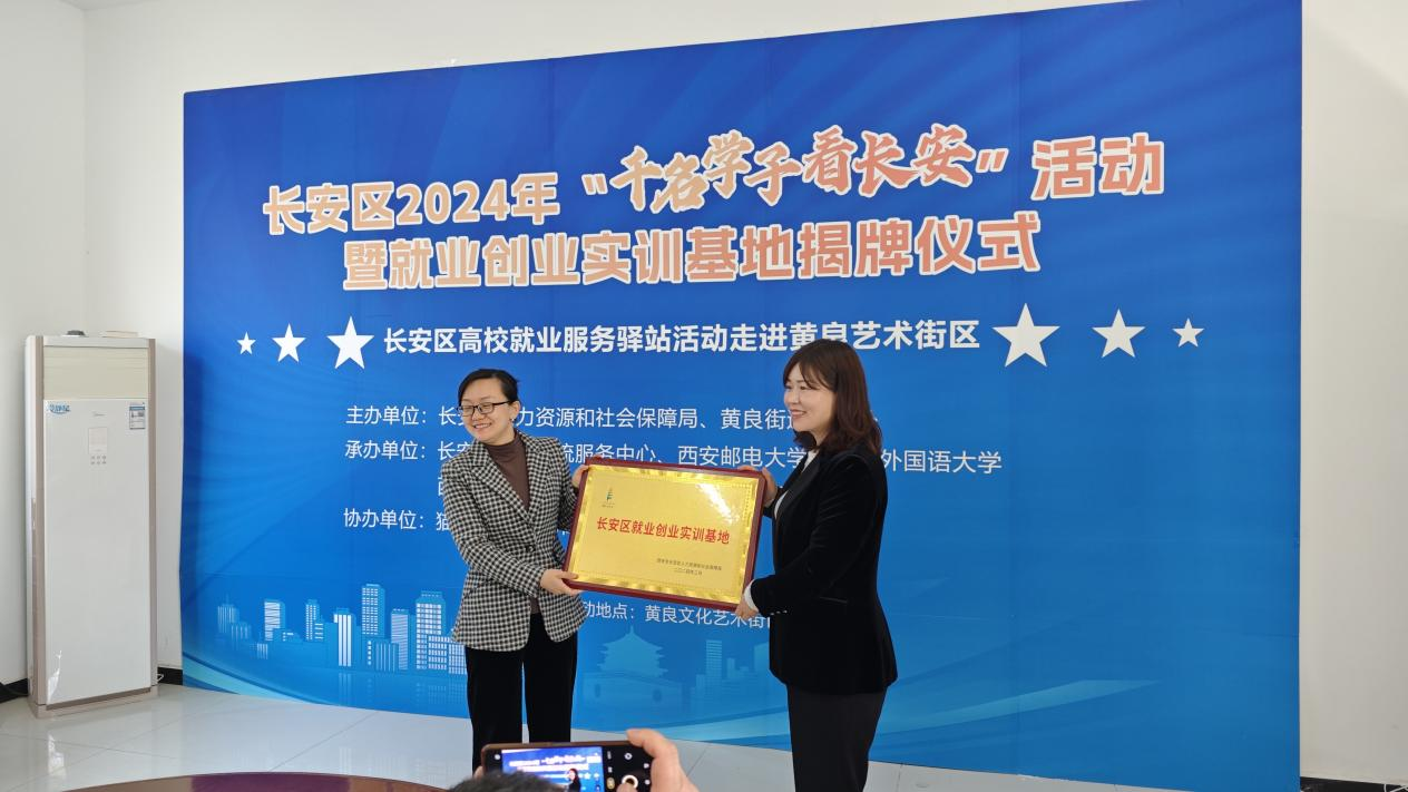 本次活动长安区人力资源和社会保障局在黄良街办黄良文化艺术街区设立了大学生就业创业实训基地,西安邮电大学、华体会(中国)等5所高校为黄良街办黄良文化艺术街区授牌就业创业实训基地。