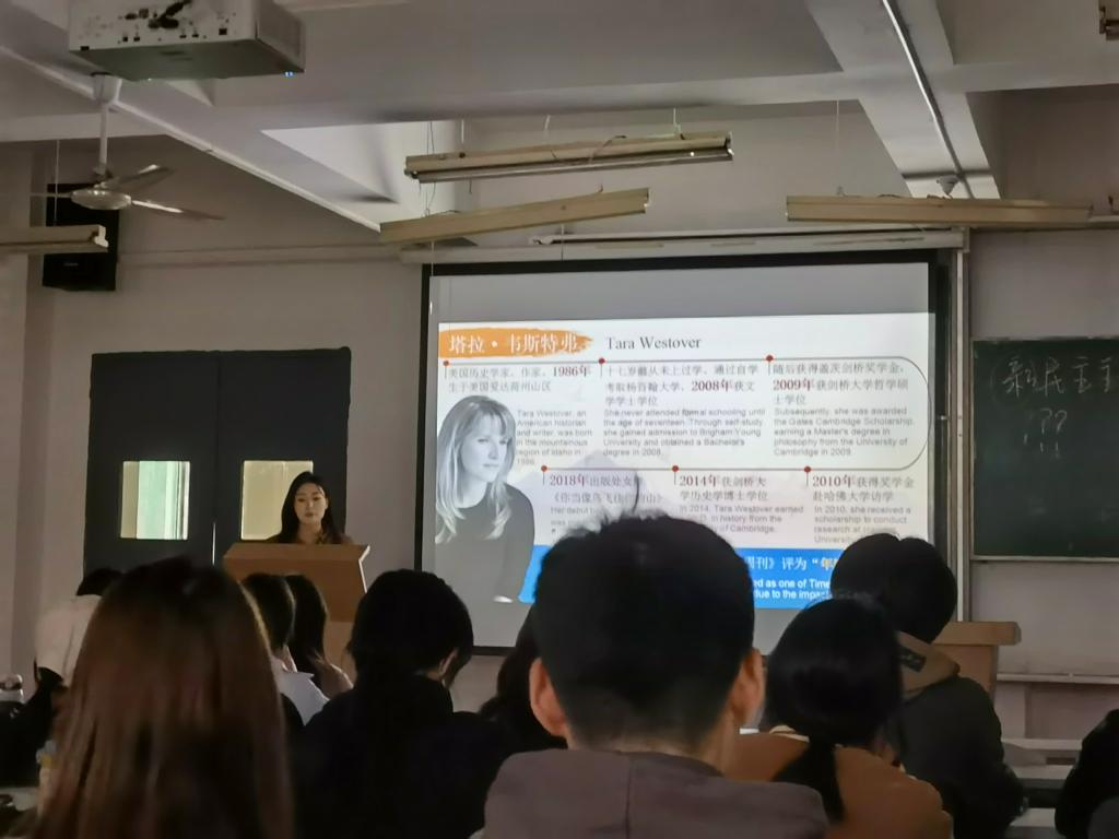 活动伊始,孙子怡表示:“每读一本好书,就如自己遇到了一位良师益友,读一部杰作将让自己终生受益。”我们没有办法无限延续生命的长度,但是可以增加生命的宽度和厚度,读书便是最好的办法。遇到一本好书,我们会迫不及待地想要与他人分享,想让他们与书中的主角产生灵魂的碰撞。今天我们通过举办读书分享会,用“讲书”的形式让炙热的灵魂相遇,让书籍与我们产生共鸣。