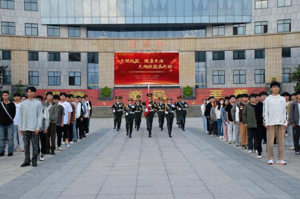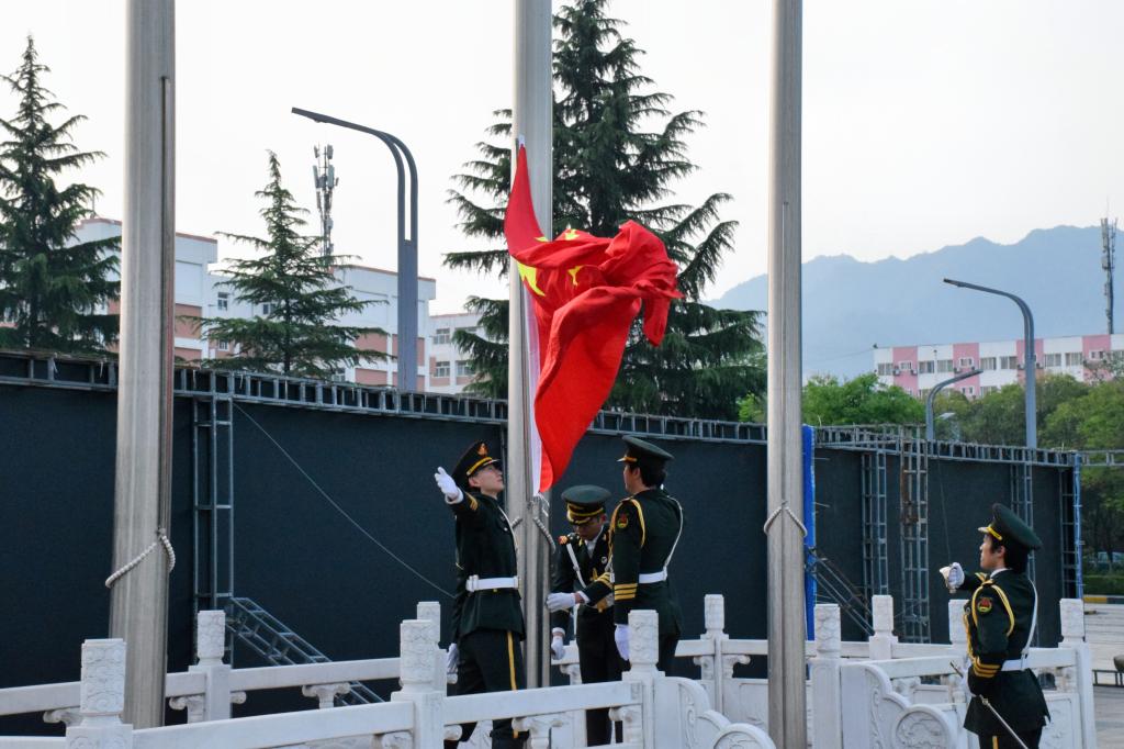 7时整,学校中心广场上,国旗护卫队队员身着笔挺的制服,英姿飒爽,迈着刚劲有力的步伐护卫着鲜艳的五星红旗缓缓走向升旗台。随着嘹亮的《义勇军进行曲》的奏响,全体师生整齐肃立,注视着国旗在晨风中冉冉升起,每个人内心都充满了对伟大祖国的无限热爱与敬仰。