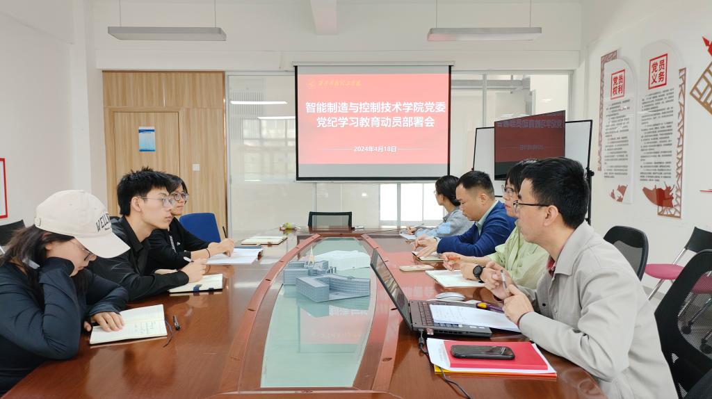 为深入学习贯彻习近平总书记关于党纪学习教育的重要讲话和重要指示精神,落实学校党委关于党纪学习教育的部署要求,4月18日上午,智能制造与控制技术学院党委在明志楼北304召开党纪学习教育动员部署会。学院党委委员、各党支部书记及教职工党员代表参加会议,会议由党委书记陈雪彬主持。
