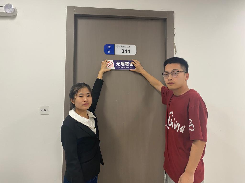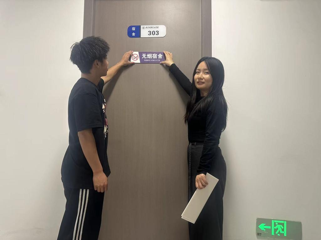 智能制造与控制技术学院组织开展了“无烟宿舍”挂牌暨学生宿舍安全卫生大检查活动。在无烟宿舍挂牌现场,辅导员鼓励无烟宿舍的学生以身作则,增强自身使命感与责任意识,以自身形象和实际行动带动其他同学养成良好的行为习惯和自我管理能力,继续保持健康、文明、卫生的生活习惯,推进宿舍文明建设。