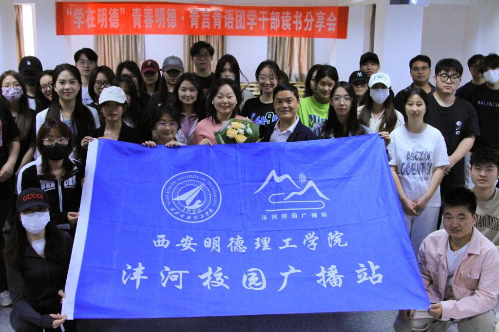 为倡导全民阅读,共建书香校园。4月23日,在第29个世界读书日,由校团委主办,沣河校园广播站承办的“学在明德·青言青语”读书分享会第二期在梅苑二楼“一站式”学生社区学业指导中心成功举办。信息工程学院辅导员张喜慧老师做读书分享,校团委副书记乔建,学生社团骨干60余人参加了分享会。