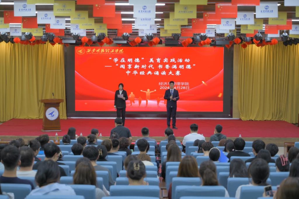 为进一步传承中华优秀传统文化,坚定文化自信,推进校园文化建设。4月28日晚,经济与管理学院在建德楼203举办“学在明德”美育实践活动——“阅享新时代 书香满明德”中华经典诵读大赛。经济与管理学院党委副书记冯纪潮、信息工程学院团委书记王佳龙、经济与管理学院团委书记卢宝全、辅导员井小林、张朋、罗夫惠、汪宏宇等7位老师出席并担任评委。学院300余名学生相聚现场观看。