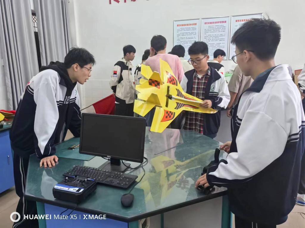 航模展演活动内容丰富,有航模飞行表演、无人机科普知识讲解、无人机模拟器练习、固体火箭等。展演现场,一架架无人机、固定翼飞机等航模在我校学生的操控下,腾空直上,翻转驰骋,赢得了师生的阵阵掌声。在无人机模拟器练习环节,同学们纷纷走上操场,在我校师生的指导下,将一架架航模送上蓝天,同学们体验着参与和成功的喜悦。表演结束后我校师生与中学师生们就航模与电子设计作品制作、操作技巧等问题展开探讨交流,并向他们讲解了飞行器制造专业的相关知识。
