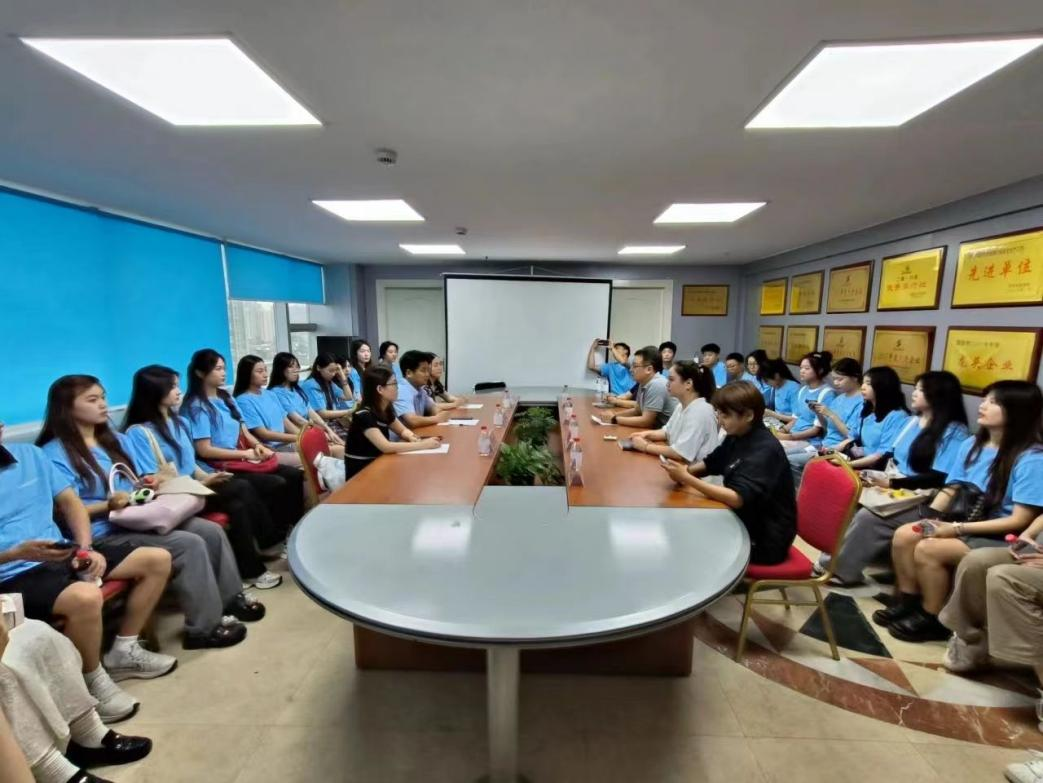 双方在会议室进行了座谈会。座谈会上,王旭向我院师生们详细介绍了公司的企业文化、商务板块和发展规划等内容,同时也针对公司的工作内容、招聘计划和要求做出了详细说明。此外,部门经理杨阳针对公司在小红书、抖音等平台开展的线上业务和人才需求进行了一一介绍,并重点介绍了公司海外线上业务的发展规划、运营管理和人才需求,表示希望通过此次学习交流能够让同学们更加深入了解互联网时代下的旅游文化和运营模式,真诚欢迎同学们来陕中旅工作实习。随后,杨峰介绍了学校发展历程有关情况,从办学定位、学科专业,师资队伍,教学科研等方面对语言文化传播学院情况进行了介绍。
