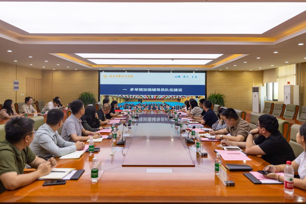 会上,童杨梓对西安交通大学城市学院学工同仁的来访表示热烈欢迎。他重点从工作体系、制度建设、队伍建设、学风品牌、智慧学工等进行简要介绍。随后双方就学生工作队伍建设与“大思政”格局构建、学生教育管理工作、“一站式”学生社区建设、学风建设、融合门户平台使用等工作内容进行了深入细致地交流探讨。