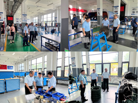 随后,我院一行在航空维修工程学院院长张超的陪同下,参观了飞机工程维修中心、铆接实训室、发动机实训室、标准线路施工实训室等实训场地。